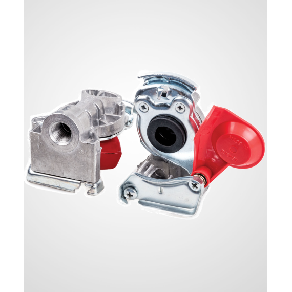 Palm coupling or 'Gladhand' connector. A form of claw coupling, used as a hose connector and often for compressed air vehicle brakes. The connectors are hermaphrodite, and the port is at right angles to the axis of the hose.