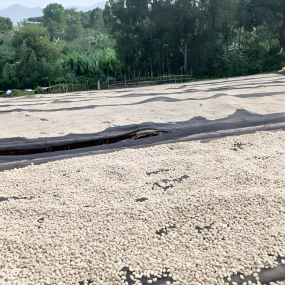 Fermentation takes place for 24-48 hours. Double washed. Sun-dried on raised beds for 10-12 days