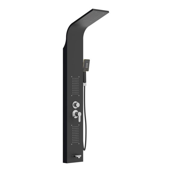 Stainless panel • Concealed overheadshower and massage system • Hot and cold 4-way router panel battery