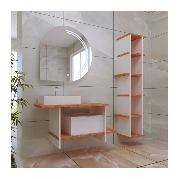 LIFE; It is designed for those who are looking for a difference in the bathroom cabinet. The LIFE model, which combines the beech panel and white balance and the structure designed asymmetrically, offers an understanding outside of the molds with its lacquer painting body and specially designed led illuminated mirror.