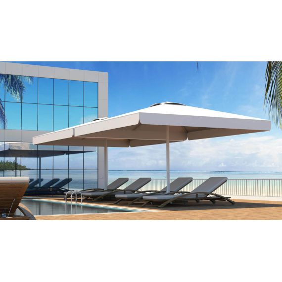 The mega umbrella is a practical and mobile model with an extensive coverage area (maximum 26 sqm). Mega umbrella is produced with wide cross-section aluminium profile structure that is covered with acrylic fabric.