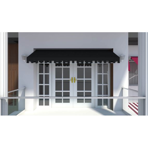 Special  design (boutique) awning; This is a special boutique awning that is produced with box profiles according to the requirements and the dynamics of the front side of the areas. Besides aesthetic purposes it also provides outside protection from sun and rain. Construction painted with electro-static paint to avoid corrosion and to extend life-time usage.There are several Acrylic Fabric options in different colors and patterns and optionally, different concepts can be created by printing the name or company logo.
