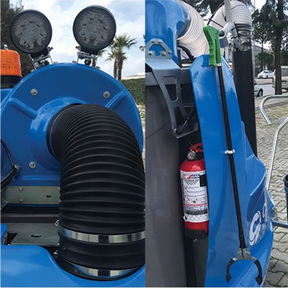 It performs effectively and quickly in collecting paper, cardboard, cola cans, cigarette butts, cigarette packages, leaves, broken glass pieces, plastic or metal bottles, animal droppings, iron pieces and all similar materials. Provides long-term operation on a single charge.