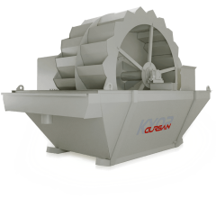 BUCKET WASHERS are machines that provide the function of holding the sand coming from the sieve with the water and washing it again. The machine consists of a dewatering drum with a perforated bucket rotating in a settling tub. The slurry is loaded from one side of the dewatering drum and...