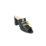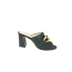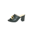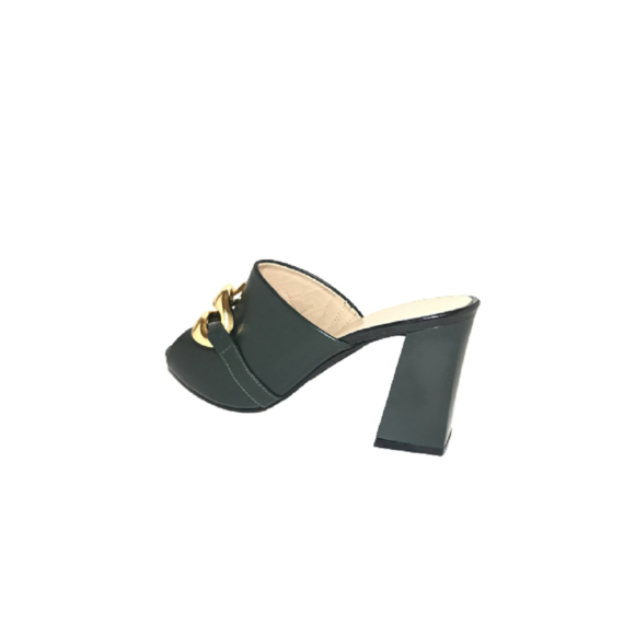 D&A İzland Shoes Women's Genuine Leather Green Color Stylish Gold Chain Buckle High Heel Slippers